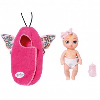 Każda laleczka ma około 11 cm, to naprawdę maluchy! Kocyk wykonany jest z prawdziwej tkaniny. Aby obudzić dzidziusia, użyj wody (wilgotna ściereczka), w ten sposób zobaczysz, jaki ma kolor oczu! Rozpakuj rożek, kolor butelki zadecyduje o płci dziecka. Niemowlę może pić wodę z buteleczki, robi też siusiu!