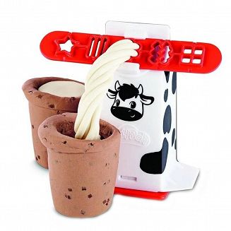 - Magiczne mleko – specjalny tor Play-Doh pozwala „wlać” mleko do szklanki i tworzyć aż 5 różnych kształtów strumienia.