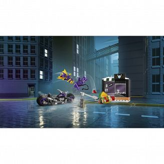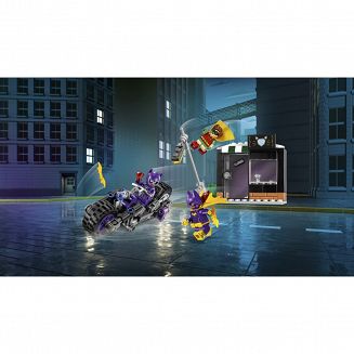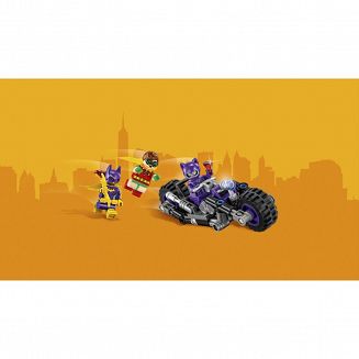 Kobieta kot próbuje włamać się i napaść na sklep jubilerski. Wykradła diament i próbuje uciec na swoim motocyklu. Pomóż Batgirl i Robinowi złapać uciekinierkę i odzyskać cenny diament. Motocykl ma gumowe opony oraz przezroczyste światła przednie.
