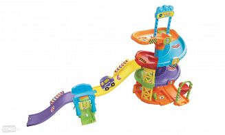 Wieża Parkingowa dostarcza nieskończenie wiele emocji! Dzięki spiralnej rampy oraz torów dzieci mogą budować dowolne trasy wyścigowe lub łączyć elementy z innymi zestawami. Puść wodze fantazji i daj się ponieść wyobraźni. Podnieś bramkę, aby wysłać vana w jedną z dwóch dostępnych dróg! Pojazd w 6 wyznaczonych punktach odpowiada zwrotami, piosenkami oraz śmiesznymi efektami dźwiękowymi, uczy nazwy pojazdu poprzez odgrywanie ról. Dodatkową zaletą jest automatyczne wyłączenie, co oszczędza baterie (2 baterie LR03 w zestawie tylko w celach demonstracyjnych). Trwałe wykonanie gwarantuje bezpieczeństwo podczas zabawy. Szalona Rampa przyczynia się do rozwoju umiejętności motorycznych, wyobraźni oraz wpływa na rozwój językowy. Przeznaczona jest dla dzieci, które ukończyły 1 rok życia do 5 lat.